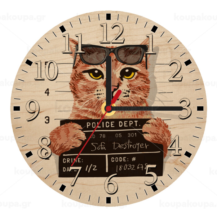 Cool cat, Ρολόι τοίχου ξύλινο plywood (20cm)