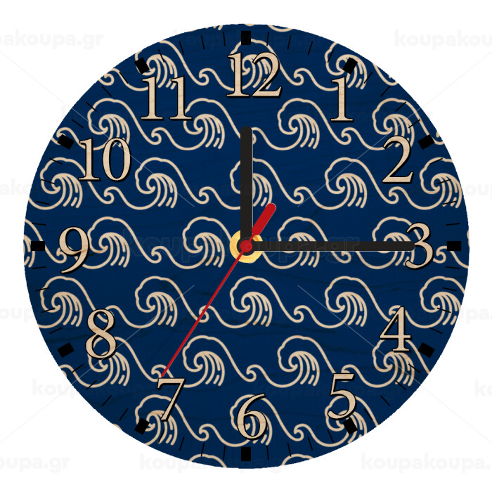 Blue Waves, Ρολόι τοίχου ξύλινο plywood (20cm)