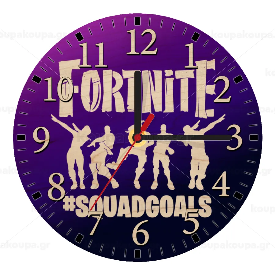 Fortnite #squadgoals, Ρολόι τοίχου ξύλινο plywood (20cm)