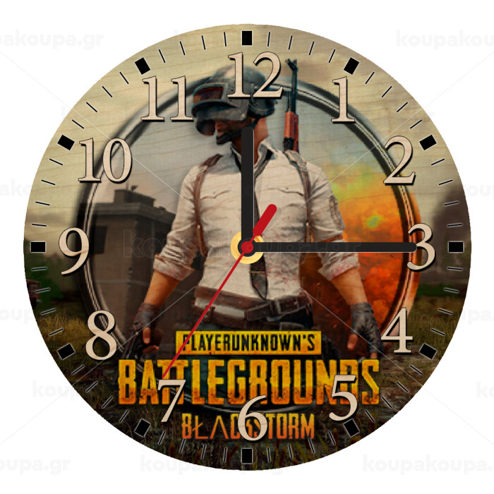 PUBG battleground royale, Ρολόι τοίχου ξύλινο plywood (20cm)