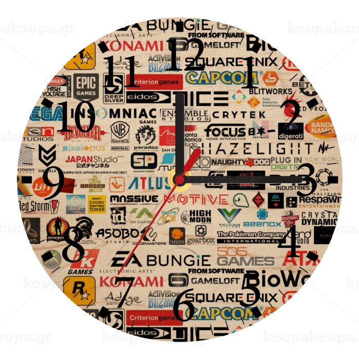 Video Game Studio Logos, Ρολόι τοίχου ξύλινο plywood (20cm)