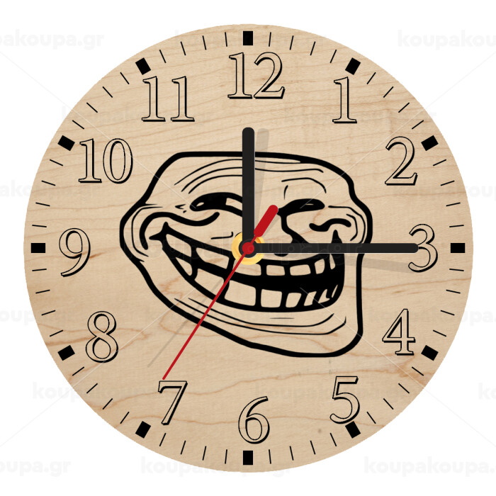 Troll face, Ρολόι τοίχου ξύλινο plywood (20cm)