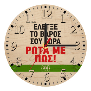 Έλεγξε το βάρος σου ρώτα με πως! {your logo here}, Ρολόι τοίχου ξύλινο plywood (20cm)
