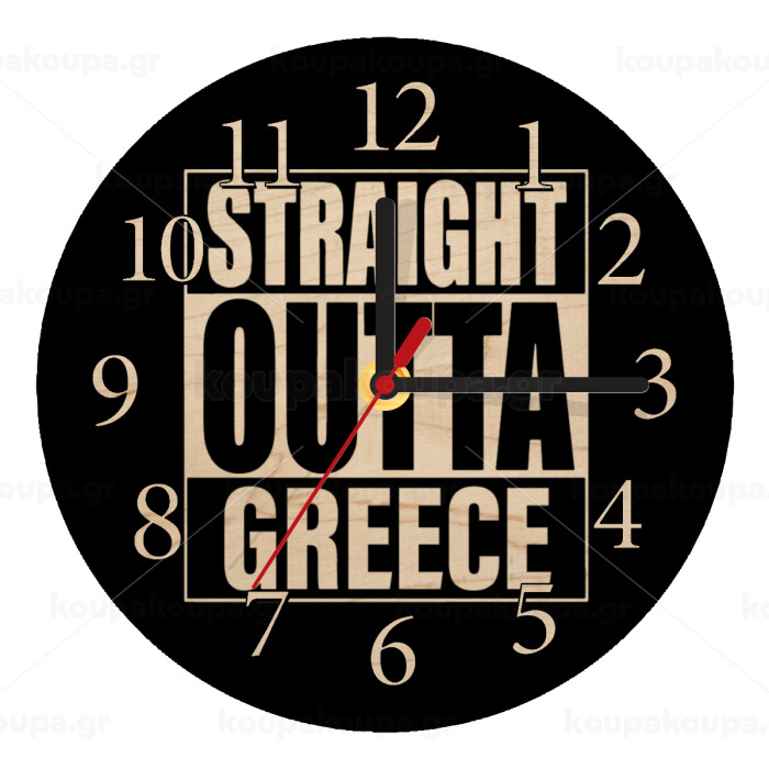 Straight Outta greece, Ρολόι τοίχου ξύλινο plywood (20cm)