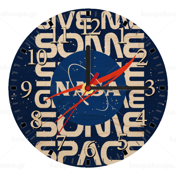 NASA give me some space, Ρολόι τοίχου ξύλινο plywood (20cm)