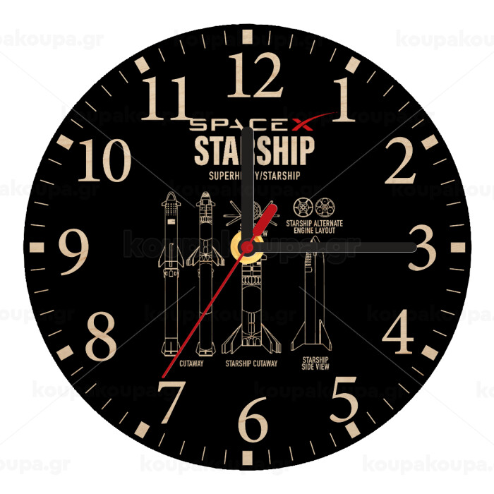 Space X, Ρολόι τοίχου ξύλινο plywood (20cm)
