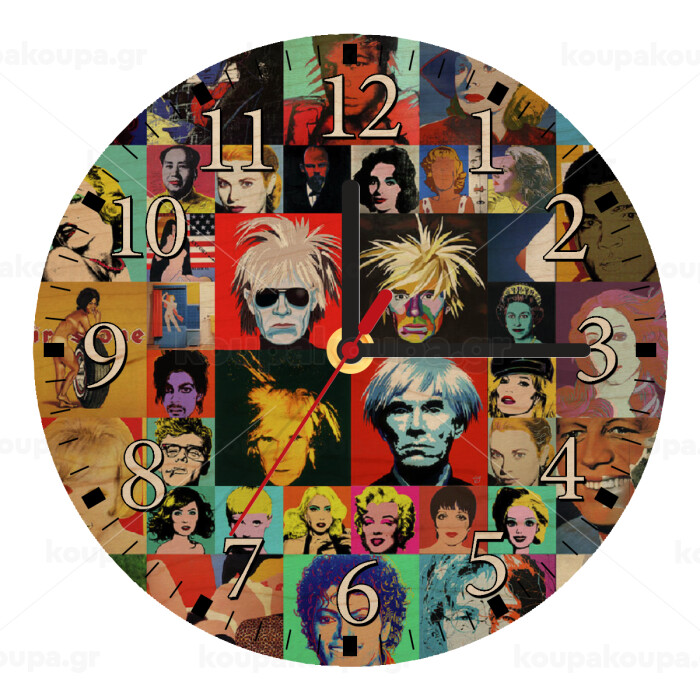 Warhol pop art, Ρολόι τοίχου ξύλινο plywood (20cm)