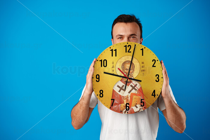 Saint Nicholas orthodox , Ρολόι τοίχου ξύλινο (30cm)