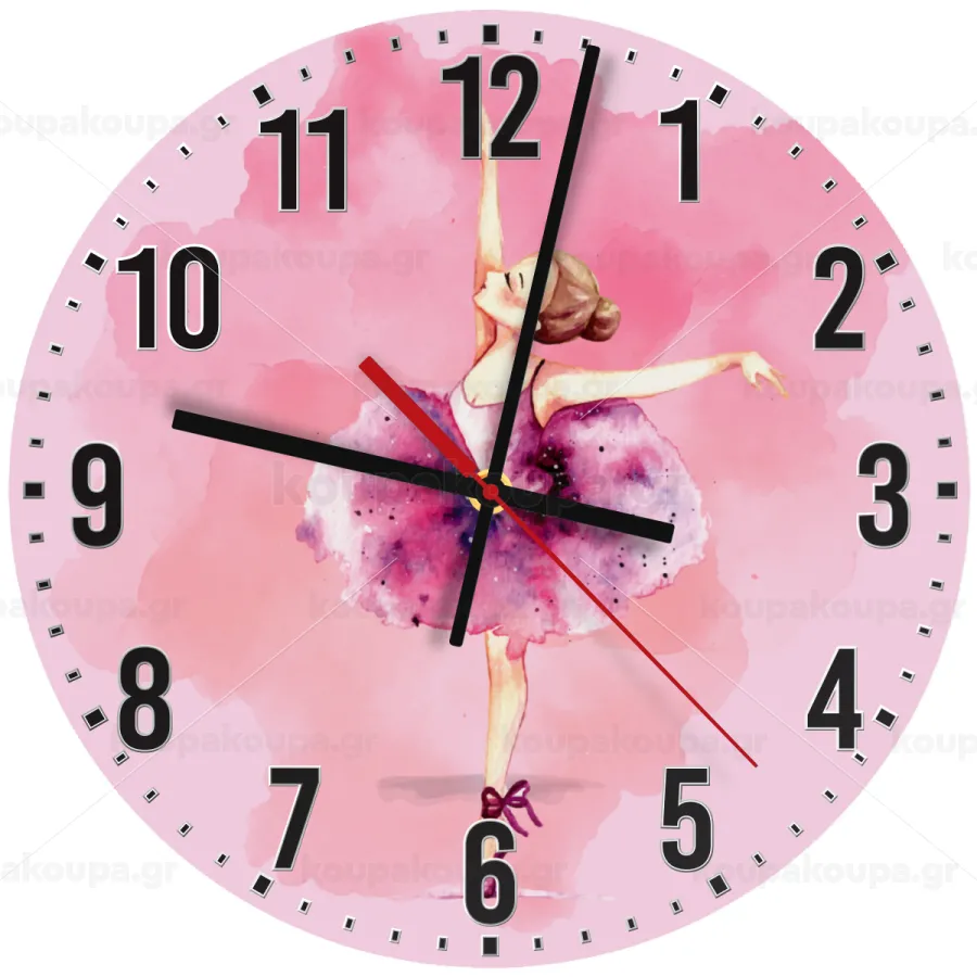 Ballerina watercolor, Ρολόι τοίχου ξύλινο (30cm)