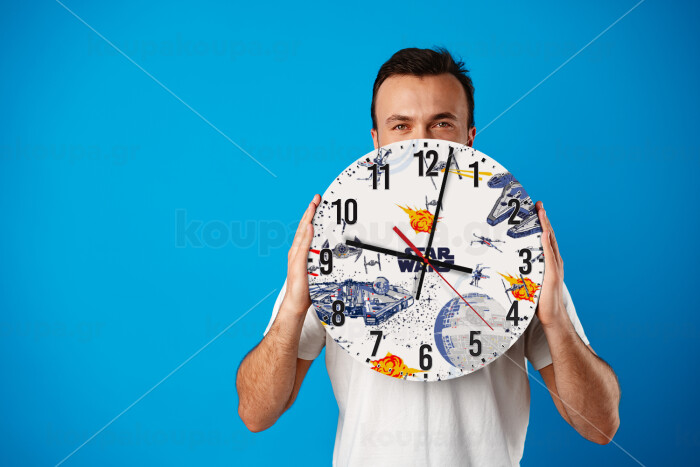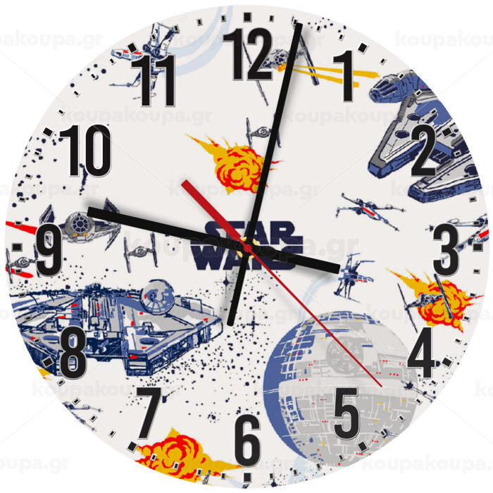 Star wars drawing, Ρολόι τοίχου ξύλινο (30cm)