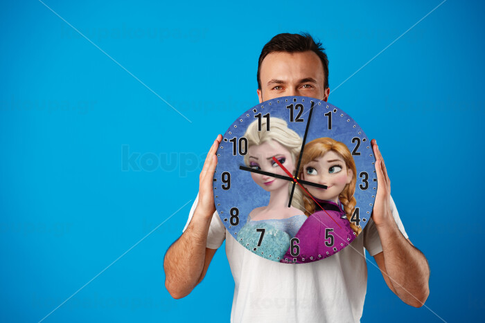 Ψυχρά κι ανάποδα Έλσα και Άννα, Ρολόι τοίχου ξύλινο (30cm)