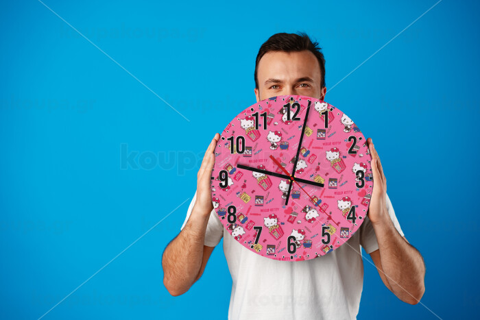 Hello kitty, Ρολόι τοίχου ξύλινο (30cm)