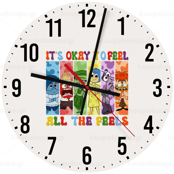 Inside Out It's Okay To Feel All The Feels , Ρολόι τοίχου ξύλινο (30cm)