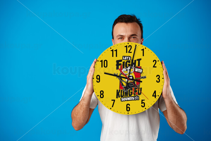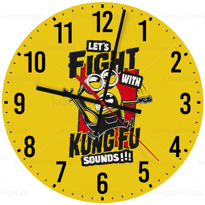 Minions Let's fight with kung fu sounds, Ρολόι τοίχου ξύλινο (30cm)