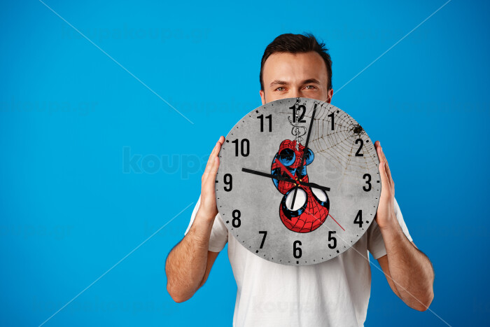 Spiderman upside down, Ρολόι τοίχου ξύλινο (30cm)