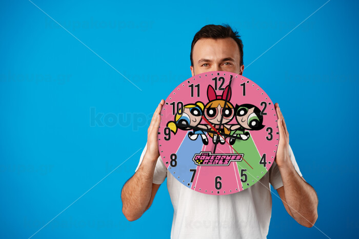 The powerpuff girls , Ρολόι τοίχου ξύλινο (30cm)