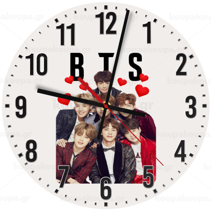 BTS hearts, Ρολόι τοίχου ξύλινο (30cm)