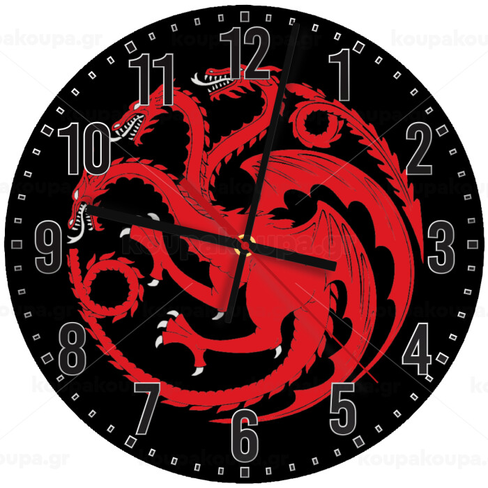 GOT House Targaryen, Fire Blood, Ρολόι τοίχου ξύλινο (30cm)