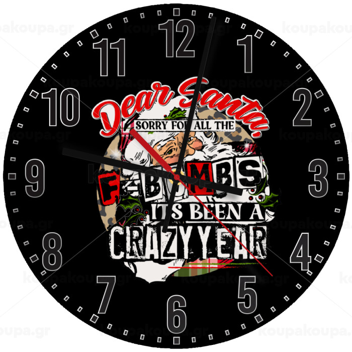 Dear Santa, sorry for all the F-bombs, Ρολόι τοίχου ξύλινο (30cm)