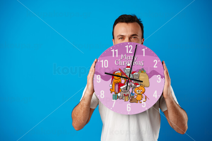 Merry Christmas Cats, Ρολόι τοίχου ξύλινο (30cm)
