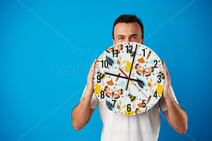 Πεταλούδες, Ρολόι τοίχου ξύλινο (30cm)