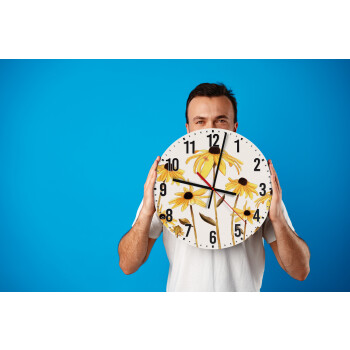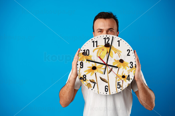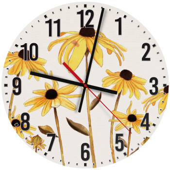 Daisies flower, Ρολόι τοίχου ξύλινο (30cm)