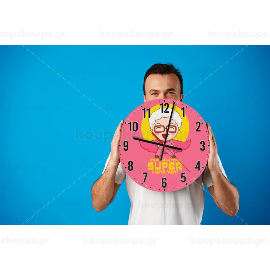 To my best Super Grandma!, Ρολόι τοίχου ξύλινο (30cm)