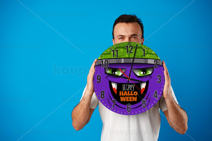 Halloween trick or treat Monster, Ρολόι τοίχου ξύλινο (30cm)