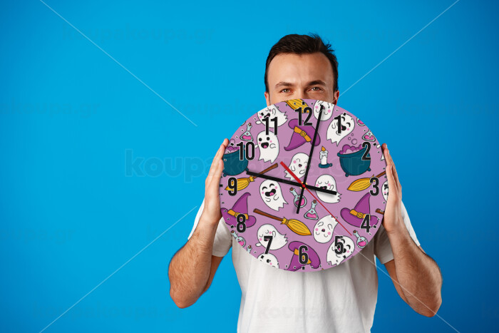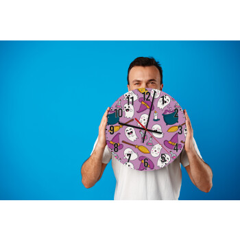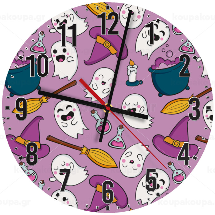 Happy Halloween pink, Ρολόι τοίχου ξύλινο (30cm)