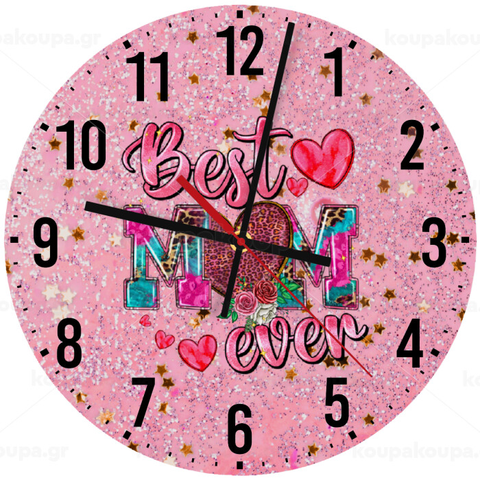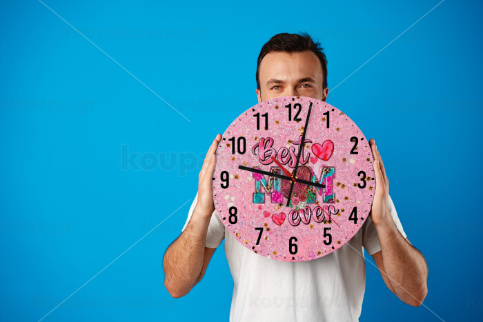 Best mom ever Mother's Day pink, Ρολόι τοίχου ξύλινο (30cm)