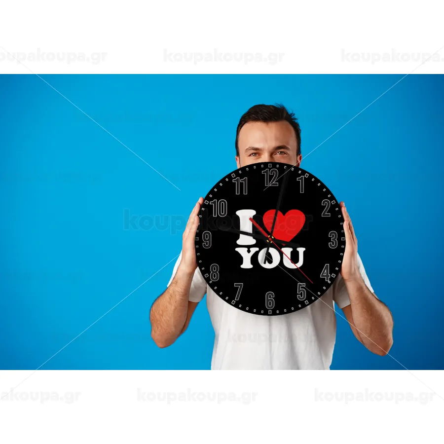 I LOVE YOU, Ρολόι τοίχου ξύλινο (30cm)