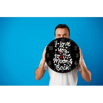 I love you to the moon and back with hearts, Ρολόι τοίχου ξύλινο (30cm)