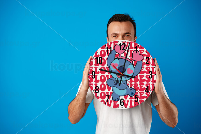 Lilo & Stitch Love vibes, Ρολόι τοίχου ξύλινο (30cm)