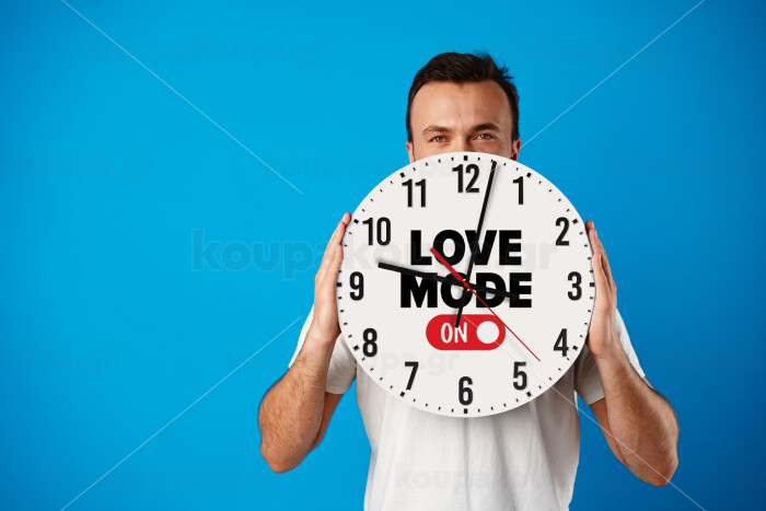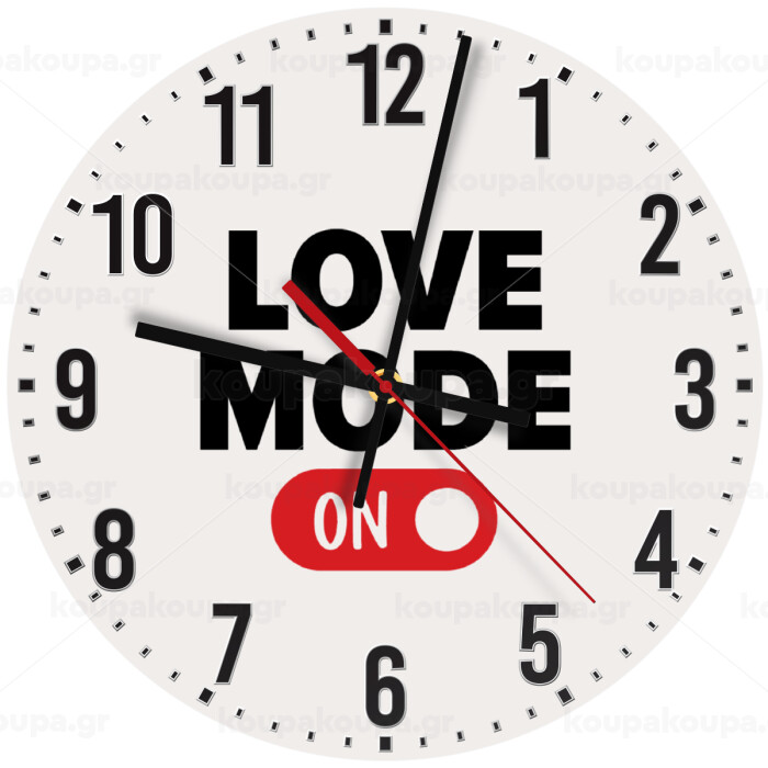 LOVE MODE ON, Ρολόι τοίχου ξύλινο (30cm)