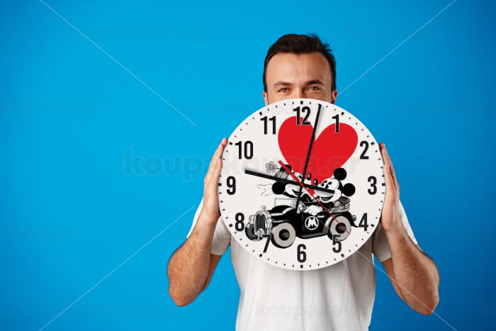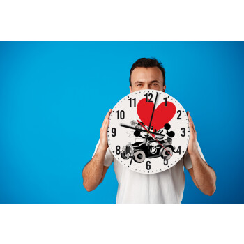 Mickey & Minnie love car, Ρολόι τοίχου ξύλινο (30cm)