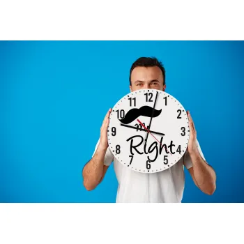 Mr right Mustache, Ρολόι τοίχου ξύλινο (30cm)