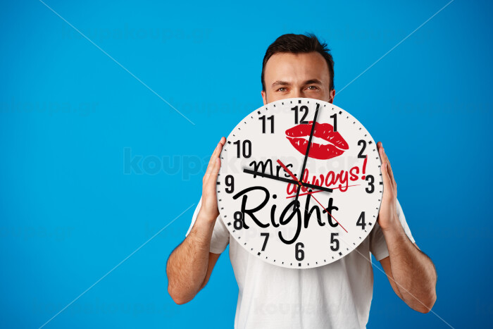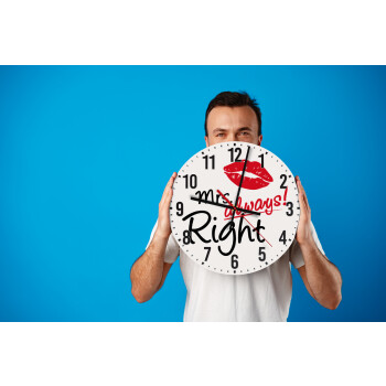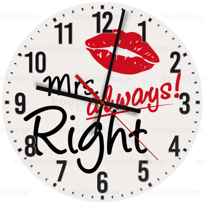 Mrs always right kiss, Ρολόι τοίχου ξύλινο (30cm)