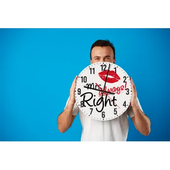 Mrs always right kiss, Ρολόι τοίχου ξύλινο (30cm)