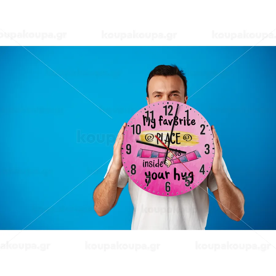 My favorite place is inside your HUG, Ρολόι τοίχου ξύλινο (30cm)