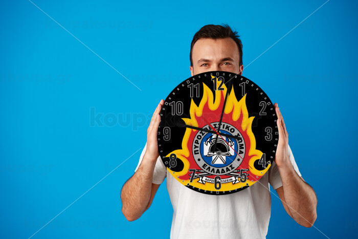 Πυροσβεστικό σώμα Ελλάδος σκούρο, Ρολόι τοίχου ξύλινο (30cm)