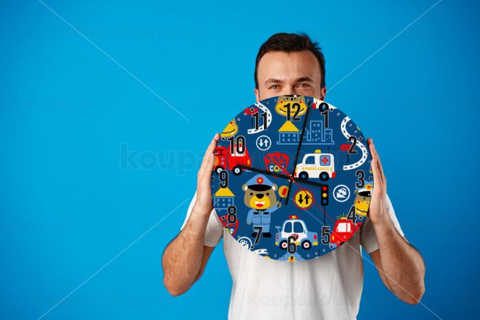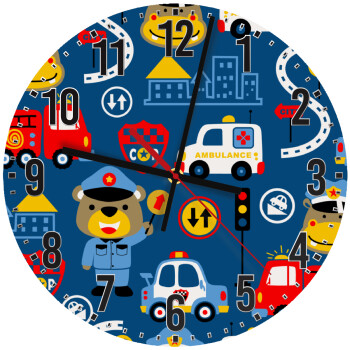 Rescue team cartoon, Ρολόι τοίχου ξύλινο (30cm)