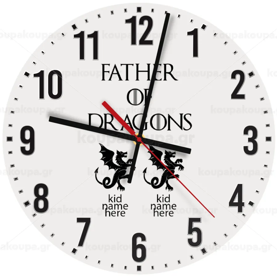 GOT, Father of Dragons (με ονόματα παιδικά), Ρολόι τοίχου ξύλινο (30cm)