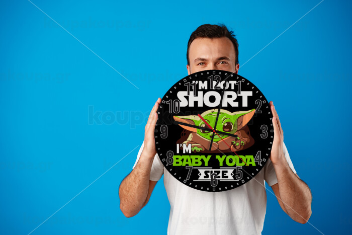 I'm not short, i'm Baby Yoda size, Ρολόι τοίχου ξύλινο (30cm)