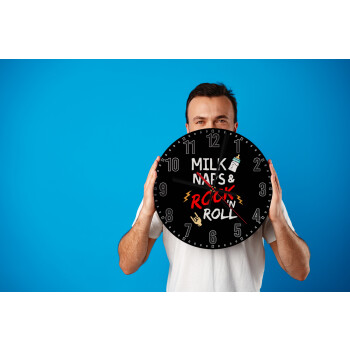 milk naps and Rock n' Roll, Ρολόι τοίχου ξύλινο (30cm)