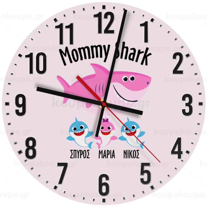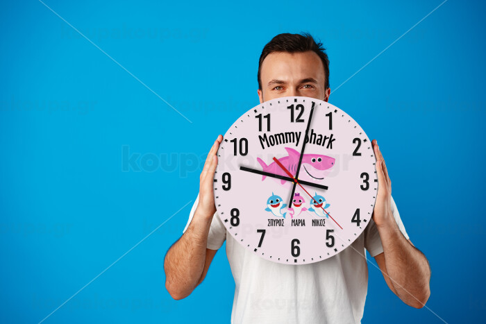 Mommy Shark (με ονόματα παιδικά), Ρολόι τοίχου ξύλινο (30cm)