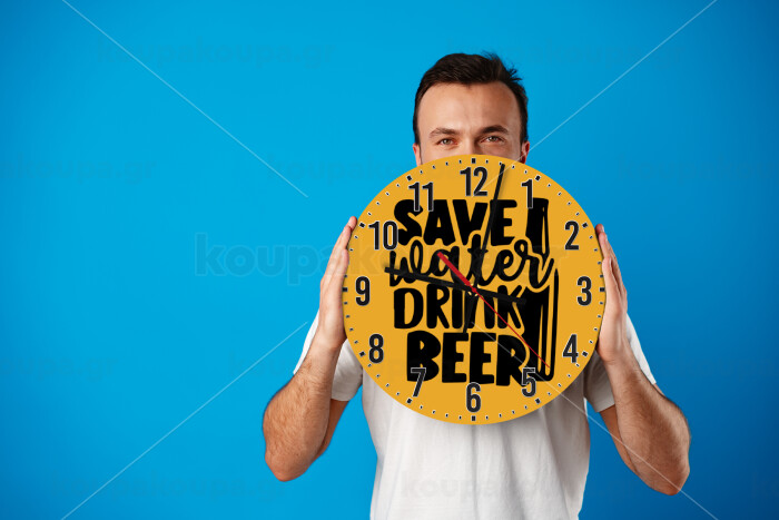 Save Water, Drink BEER, Ρολόι τοίχου ξύλινο (30cm)