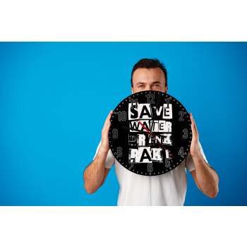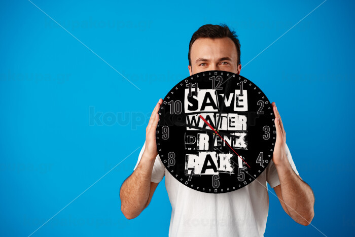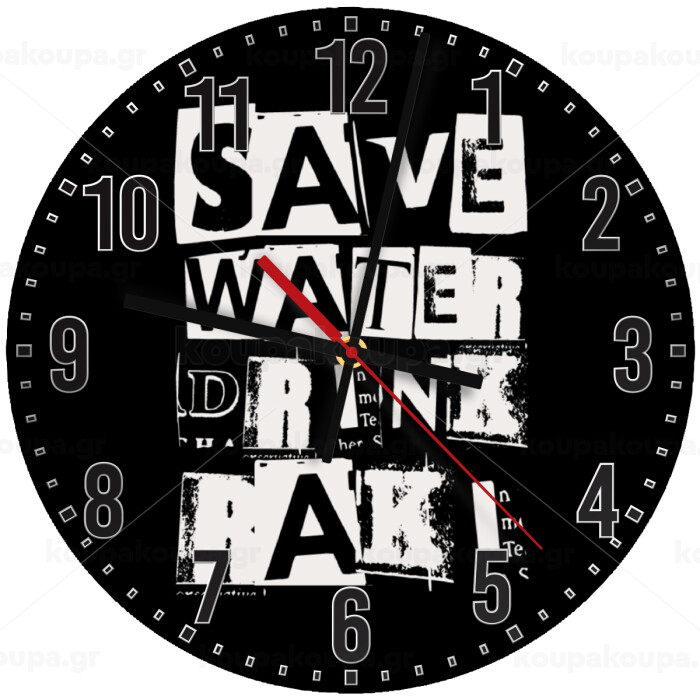 Save Water, Drink RAKI, Ρολόι τοίχου ξύλινο (30cm)