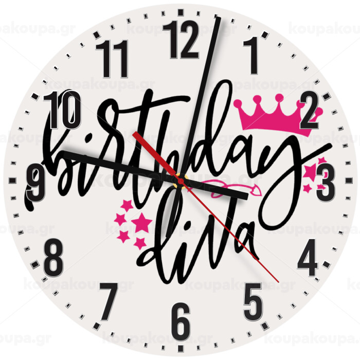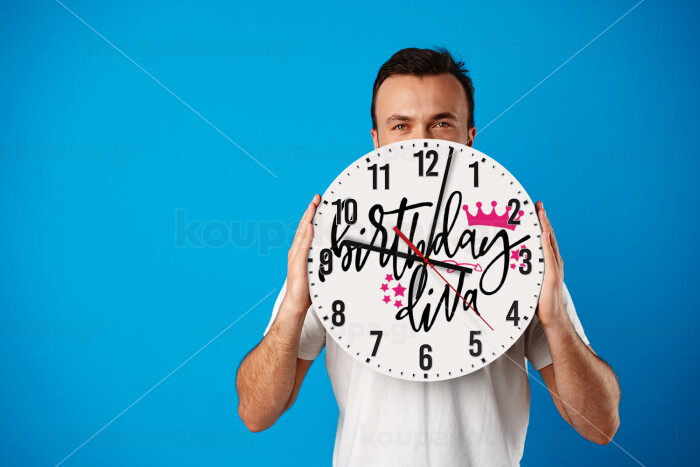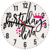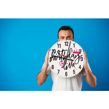 Birthday Diva queen, Ρολόι τοίχου ξύλινο (30cm)
