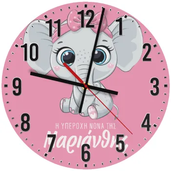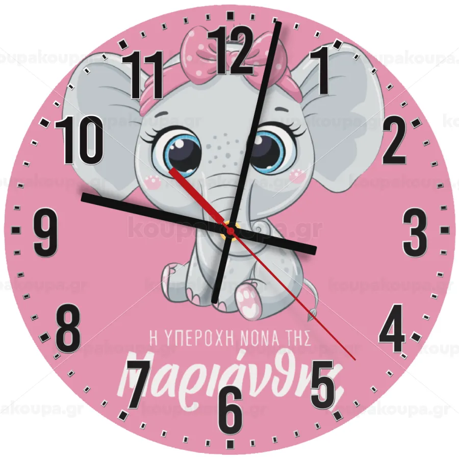 Η νονά μου, ελεφαντάκι ροζ, Ρολόι τοίχου ξύλινο (30cm)