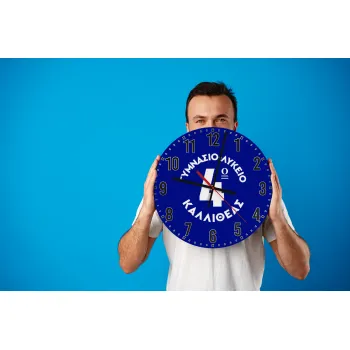 Έμβλημα Σχολικό μπλε κλασικό, Ρολόι τοίχου ξύλινο (30cm)
